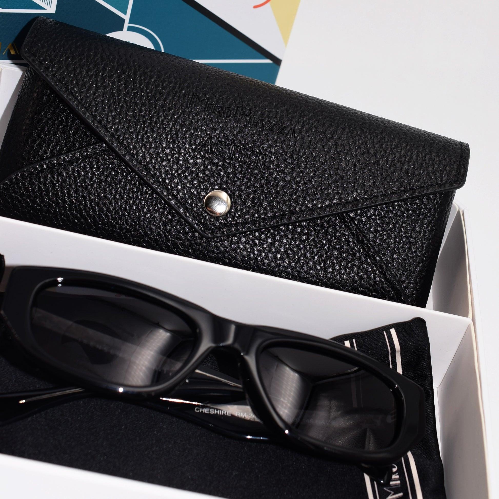 眼鏡、米羅眼鏡外盒、訂製皮紋黑眼鏡盒、產品說明書(保證書)、超細纖維眼鏡袋
