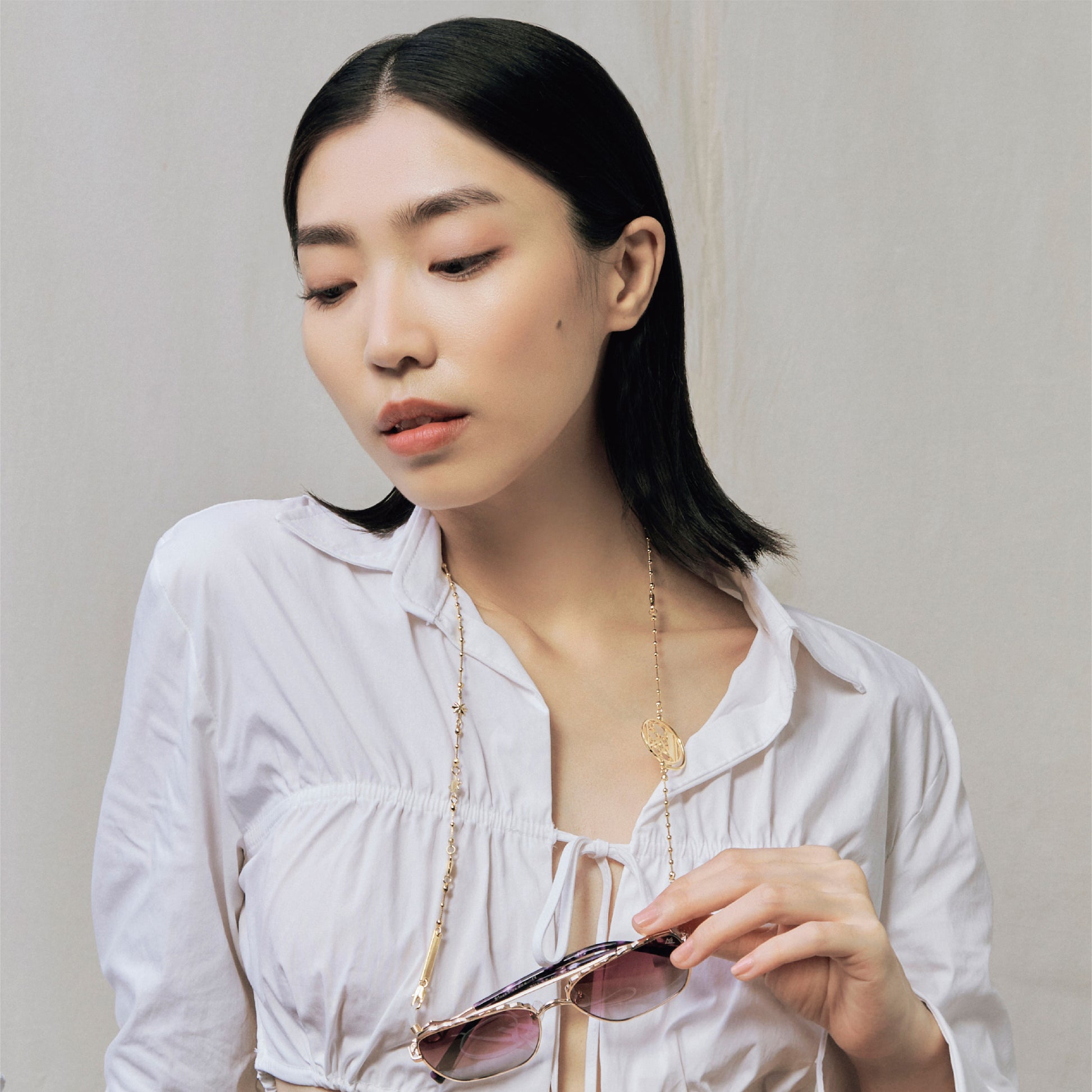 美麗奢華玫瑰金,象徵女神為大地落下的祝福之淚,TEARS 吊鏈將鏤空水滴型吊飾與 Joan Miró 鍾愛的星星、太陽、月亮三大元素結合,而女神的祝福則變換成一顆顆閃亮的水鑽點綴,如同天上星星的碎片將妳圍繞,無時無刻陪伴著妳。滿足你各種時尚需求,它可以是口罩鍊、眼鏡鍊、手鍊和項鍊。